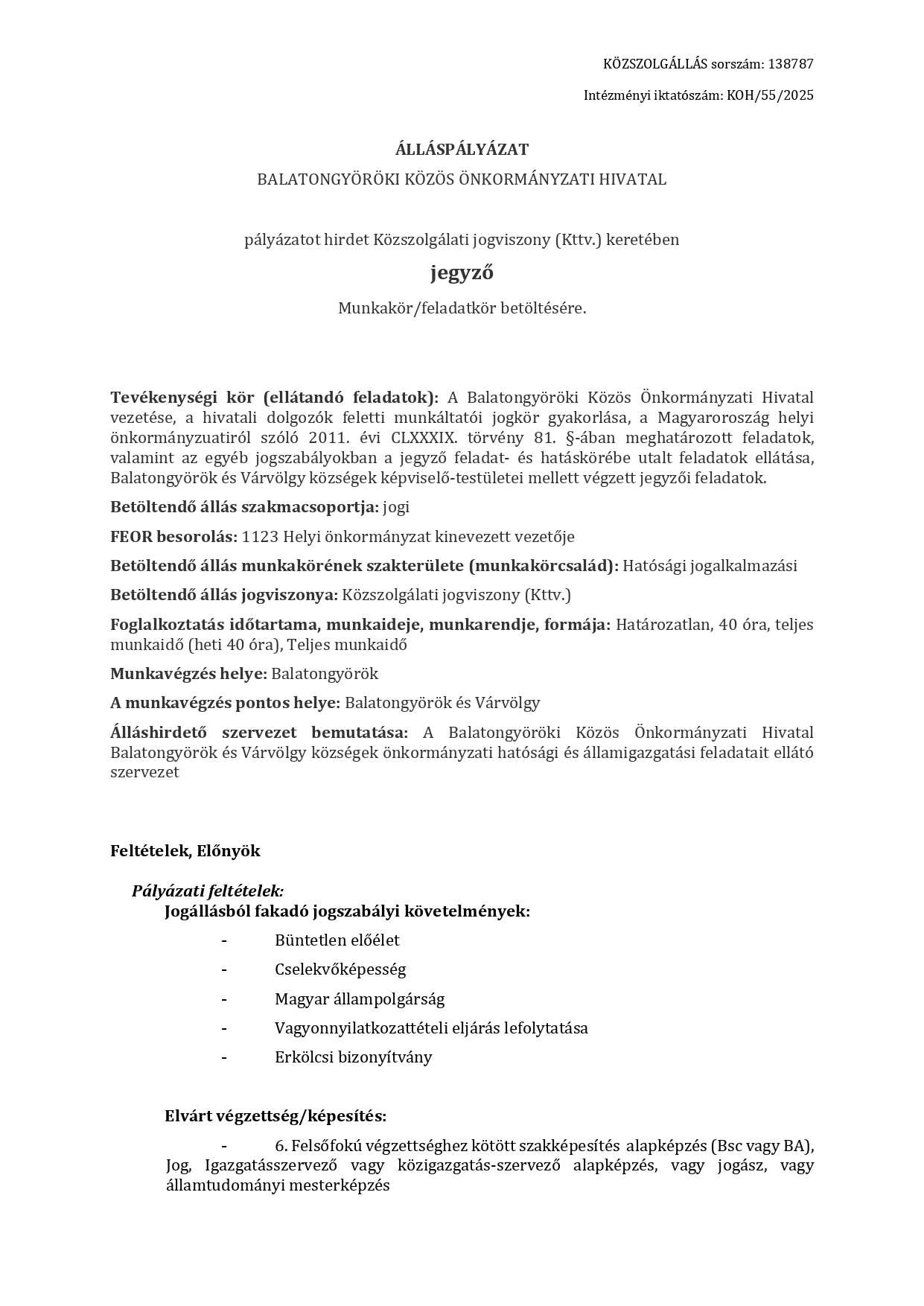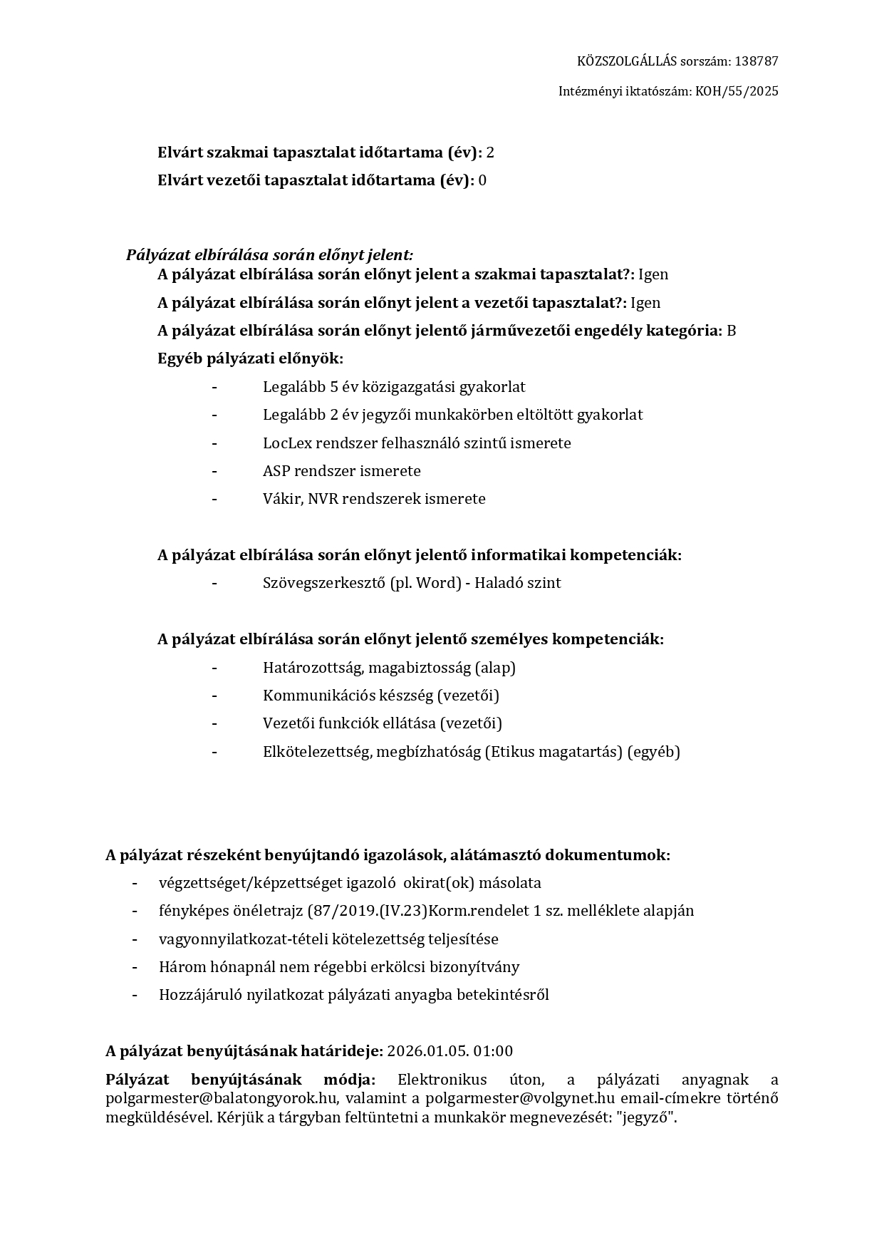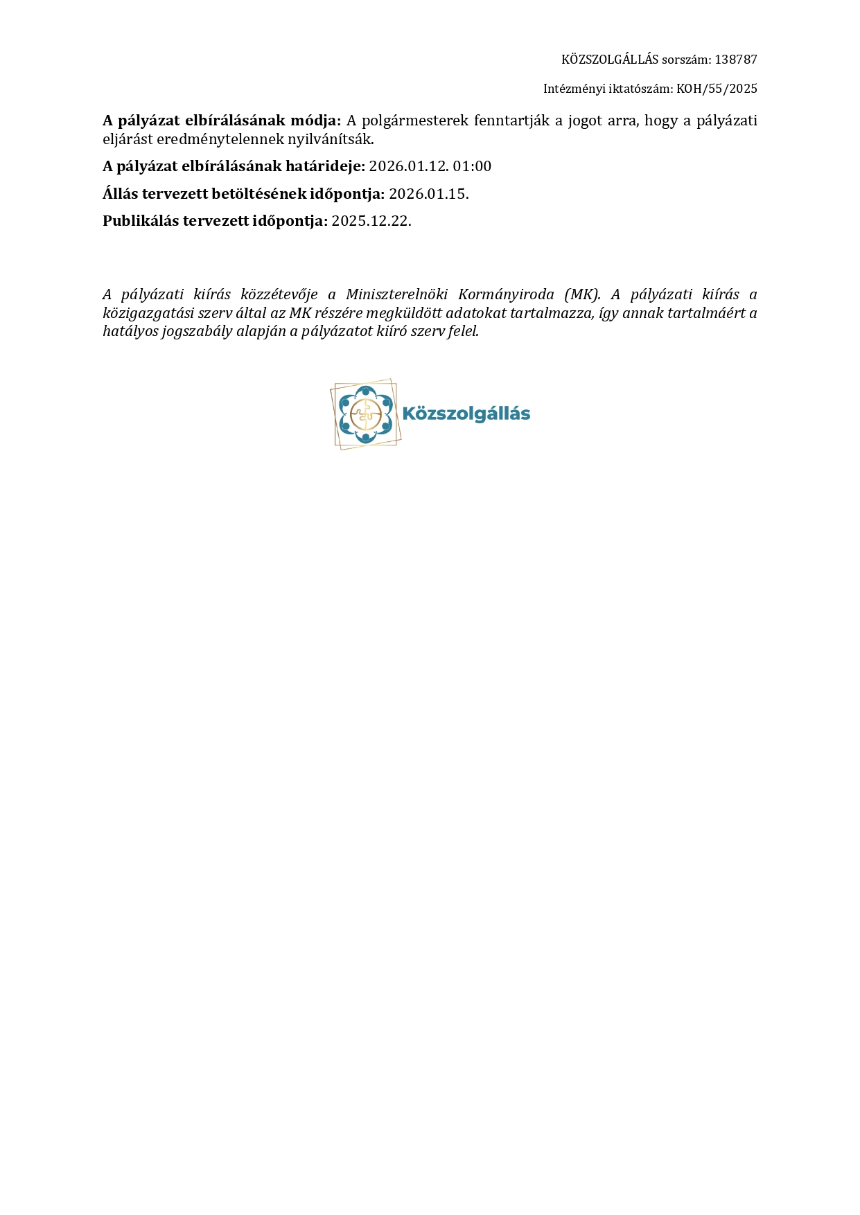 A munkakör betölthetőségének időpontja: 2026. január 1.